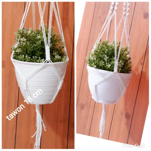 Baru Koleksi Pot Bunga Gantung Tali Model 4simpul Pot Putih Diameter 18cm Beserta Tali Lazada Indonesia